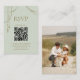 This boho wedding QR Code RSVP card features a gold-coloured draped beads and a full photo on the back. Personalise the custom text above. Matching items available.