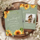 Modern rustic botanical sunflowers budget affordable all in one sage green wedding invitation with custom photo, QR code to website, and online rsvp featuring a chic handwriting calligraphy script. +++++ Suitable for rustic modern summer or autumn fall garden or outdoor backyard farmhouse barn weddings.