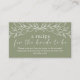 Sage Green Boho Flowers Wedding Recipe Enclosure Card