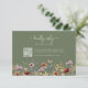 Make responding effortless and stylish with our Sage Green Boho Wildflowers RSVP card, featuring a beautifully scripted “Kindly Reply” header for an elegant touch. Adorned with hand-painted wildflowers in rich earthy tones and a calming sage green backdrop, this design perfectly complements your wedding suite. The included QR code adds a modern and convenient way for guests to respond, blending timeless charm with functionality. Ensure your RSVP process is as seamless and memorable as your big day with this thoughtfully designed card.