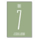 Classy sage green and white minimalist style, ultra modern personalised wedding table number with bold simple typography. This table number is easily editable. If you need help with the customisation of this product or you need more matching products for this collection kindly message me via Zazzle.