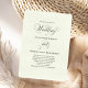 Set the tone for your special day with this sage green botanical wedding invitation featuring elegant script typography and a soft, minimalist layout. The light green tones create a fresh, romantic feel perfect for garden, botanical, or modern weddings. Designed with timeless calligraphy and clean spacing, this invitation keeps your details beautifully organized while maintaining a refined and sophisticated look. Fully customizable with your names, date, and wedding information to create a cohesive and memorable stationery suite.