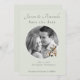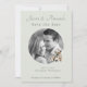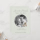 Set on a calming sage background, the layout features classic script names paired with clean serif text for a look that feels both modern and heirloom-inspired. A delicate floral illustration adds warmth without overpowering the photograph, keeping the focus on your story.
