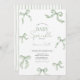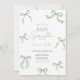 Celebrate a sweet new addition with this elegant sage green bow baby sprinkle invitation. Featuring soft watercolor green ribbons scattered across a clean white background with subtle striped accents, this design offers a calm, modern, and timeless look—perfect for a baby sprinkle celebration.
