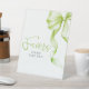 Part of the elegant green bow invitation suite, this modern bridal shower (or baby shower, engagement party, etc.) pedestal sign adds a stylish, coordinated touch to your celebration. Featuring a graceful sage green watercolor ribbon along the edge, it is perfect for guiding guests to the favours table, this sign brings together beauty and function — a small but meaningful detail that ties your decor together seamlessly.