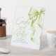Part of the elegant sage green bow "She's tying the Knot" invitation suite, this modern bridal shower pedestal sign brings a touch of chic charm to your celebration. Featuring a soft green watercolor ribbon that curls gracefully along the edge, the design combines sophistication with a playful nod to the bride-to-be "tying the knot."