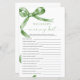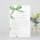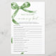 Sage Green Bow "Who Knows Mummy Best" Game – Add some fun to your baby shower with this charming game card featuring a delicate sage green bow design. This "Who Knows Mummy Best" game is perfect for engaging guests and celebrating the mummy-to-be in style. With elegant script and feminine accents, this game card is a beautiful addition to any baby shower theme, making it a memorable keepsake for the mum and her loved ones.