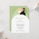 Cute bridal shower invitations, with an illustration of a bride and groom on a sage green swirl background. Get the matching postage, wedding favour labels, and mailing labels. Contact us for custom colours to match your wedding colours - PMCustomWeddings@hotmail.com