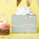“Happy Birthday“ typography with personalised name on sage green neutral background. The bunny rabbit is so cute for any age birthday party. Just as cute as can be. Matching items available.