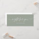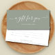 Simple and elegant minimalist sage green and white gift certificate. This elegant script Gift certificate fits perfectly within a standard #10 business envelope. Perfect for your brand and business.