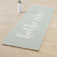 Custom-designed yoga mat featuring personalised calligraphy name on sage green background.