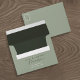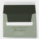 This elegant 5x7 wedding envelope features a modern sage green exterior with a deep forest green liner and stylish calligraphy names. A custom return address and monogram detail offer a refined, personalised finish—ideal for minimalist, botanical, or moody romantic wedding themes.