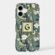 This lovely cell phone case features a beautiful dusty sage Asian print of tropical flowers and golden green leaves in Chinoiserie style. Your initial appears in dark green against a chartreuse square, and is double bordered in dark green. Make sure to type your initial in the Personalize section.