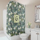 Sage Green Chinoiserie Floral White Initial Shower Curtain