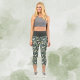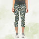 Sage Green Chinoiserie Tropical White Gold Floral Capri Leggings