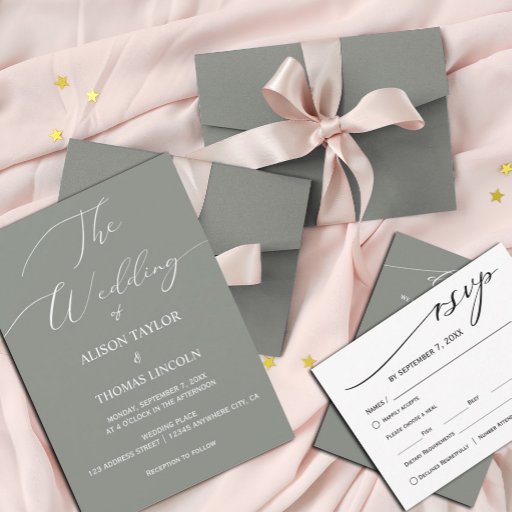 Simple Sage Green Calligraphy Wedding SuiteDesigned by Rose Art
