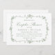 Elegant French victorian sage green floral couples shower invitation with custom text on the back.