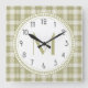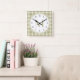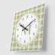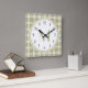 Sage Green Country Plaid Pattern Monogram Square Wall Clock