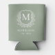 Sage Green Crest Botanical Monogram Wedding Can Cooler