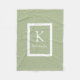 Personalised custom monogram or name in white with a soft Sage Green colour background for cosy fleece blankets - chose your size of blanket. Personalise your gift by adding your own name, childs name, family name, monogram or initials. This modern cute elegant chic design or pattern will enhance any home decor, living room, sofa, lounge, bedroom, office, boat or university or college dorm room, teenagers, nursery, girls, boys, or kids rooms. This blanket is a perfect gift for College, Christmas, Wedding, Birthday, Engagement, or for someone you love. Choose your own font and colours to make it your own.