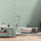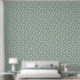 Sage green wallpaper with a cute daisy pattern.