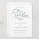Elegant sage green and white wedding invitation features romantic swirly calligraphy lettering with optional text on the back. Perfect for any season. For more advanced customisation of this design, please click the BLUE DESIGN TOOL BUTTON above!