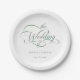 Sage Green Delicate Elegant Script Wedding Paper Plate