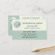 A professional appointment business card for a dentist, featuring a sage green design with space for your custom logo (optional). In case you do not need the logo images, you can simply delete the drawings to reveal the background colour.
