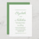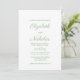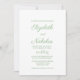 the front design shows a wedding invitation written in sage green classic calligraphy and typography with white background. the design is perfect for elegant,classic, unique,modern wedding theme.
