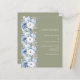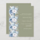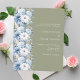 A sage green background, decorated with dusty blue and white coloured flowers. Personalise and add your names and details.