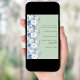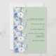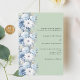 A sage green background, decorated with dusty blue and white coloured flowers. Personalise and add your names and details.