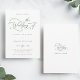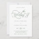 Elegant sage green and white wedding invitation features romantic swirly calligraphy lettering with optional text on the back. Perfect for any season. For more advanced customisation of this design, please click the BLUE DESIGN TOOL BUTTON above!