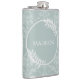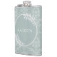Enjoy your favourite alcoholic beverages anytime with a Sage Green Elegant Damask Vinyl Wrapped Flask. Flask design features an elegant damask background and space to add your name adorned with delicate foliage. Additional gift items available with this design as well.