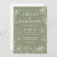 Sage Green Elegant Floral Line Art Wedding Invitation