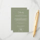 This Sage Green Elegant Floral Wedding Details Enclosure Card showcases a delicate line art flower on a sage green background, with modern typography and script calligraphy. It is fully customisable with the couple's names, reception, hotel, RSVP, and other details. The formal design and wording will add a touch of elegance to your wedding celebration.