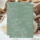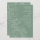 This elegant wedding invitation features a delicate floral ornamental design with flowers, birds and leaves on a sage green background. The text combines handwritten script and serif fonts for a stylish and modern look. Perfect for a winter or autumn fall wedding.