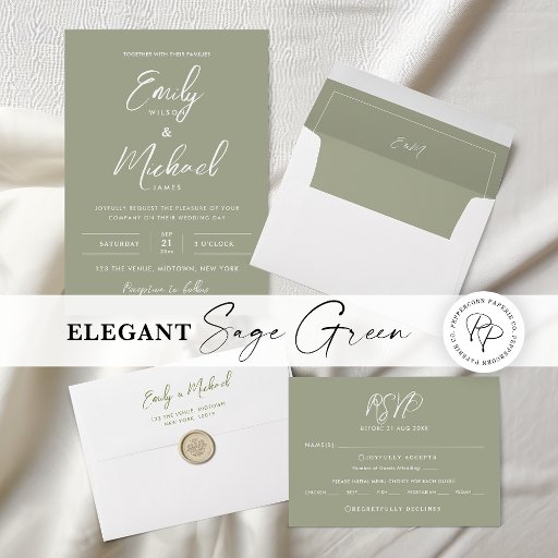 Sage Green Elegant Wedding Stationery CollectionDesigned by Claire W