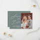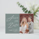 Sage Green Elegant Script Modern Photo Minimalist Wedding Save The Date Invitation Card. Let your family, friends and colleagues know that you have set a date for your wedding celebration with this elegant, stylish and modern wedding save the date invitation card. All the texts are pre-arranged for you to personalise easily and quickly with your own details.