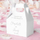 This minimalist sage green elegant script wedding favour box can be personalised with your information in stylish modern typography. Designed by Thisisnotme©