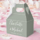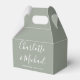 Elegant wedding favour box featuring chic signature script names and special date on a sage green background. You can personalise with your own thank you message on the reverse. A perfect way to say thank you to your guests! Designed by Thisisnotme©