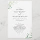 Elegant botanical Wedding Program with a simple layout featuring a sprig of eucalyptus greenery in a lovely shade of sage green in the upper left corner and lower right corner. A simple and modern choice perfect for a spring or summer wedding.