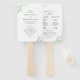 Elegant botanical Wedding Program Hand Fan with a simple layout featuring a sprig of eucalyptus greenery in a lovely shade of sage green in the upper left corner and lower right corner. A simple and modern choice perfect for a spring or summer wedding.