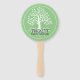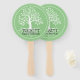 Family reunion hand fans with a white family tree silhouette and your surname on a sage green background. Makes a great prize or party favour.