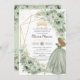 Sage Green Floral Blonde Princess Quinceañera Gold Invitation
