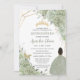 Sage Green Floral Brown Princess Gold Quinceañera Invitation