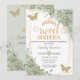 Sage Green Floral Butterflies Gold Sweet Sixteen Invitation