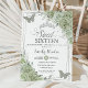 Sage Green Floral Butterflies Silver Sweet Sixteen Invitation