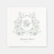 These Sage Green Floral Crest Monogram Elegant Wedding paper napkins feature an ornate chinoiserie style vintage floral crest framing the elegant script calligraphy wedding monogram.