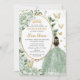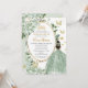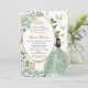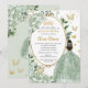 Sage Green Floral Princess Dress Gold Quinceañera Invitation