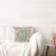 Sage Green Floral Watercolor Rose Pattern Monogram Cushion